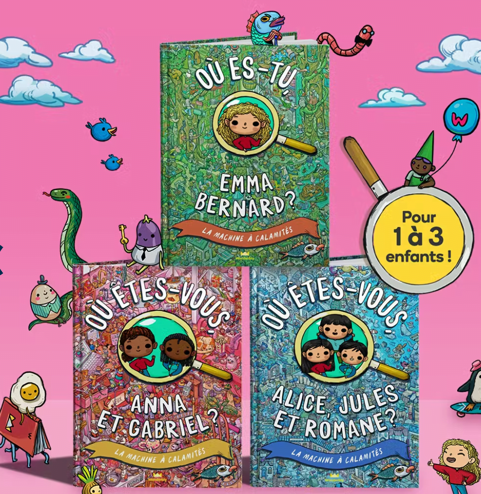 On connaissait les « Cherchez Charlie », on connaissait les versions personnalisables pour que l’enfant cherche le petit personnage qui lui ressemble. Ces livres, eux, embarquent jusqu’à 3 enfants dans une folle aventure dont ils sont les héros. De quoi passer de belles heures ensemble à déjouer les pièges d’un méchant pour sauver le monde (et accessoirement apprendre à se connaître ou à jouer tous ensemble) !