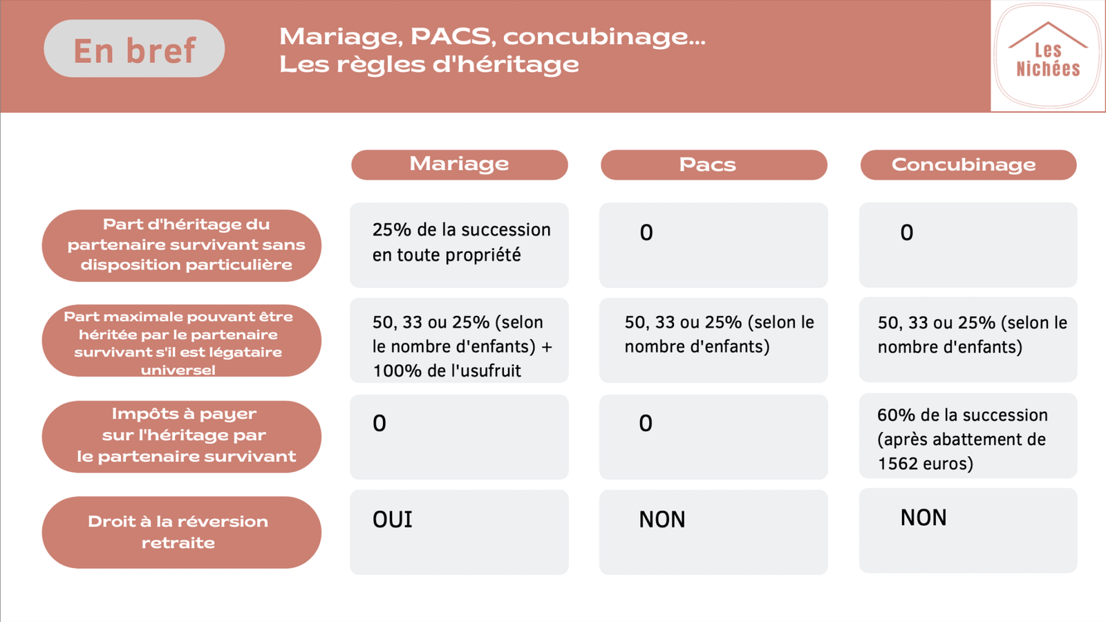 Et en cas de PACS, de concubinage ? “C’est simple, sans dispositions particulières, le partenaire de vie n’hérite de rien du tout !”